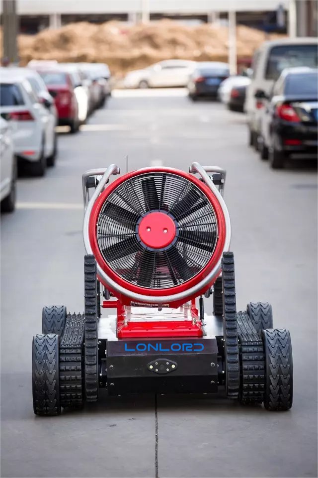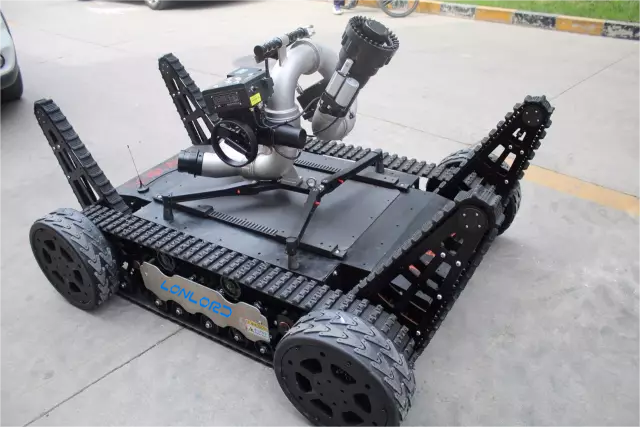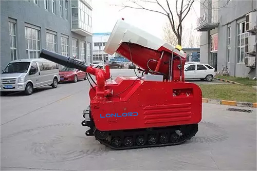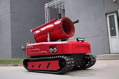滅火排煙偵察機器人裝有全地形履帶,配備大功率柴油機組驅動,負載強勁,并裝有消防噴霧機及水炮。